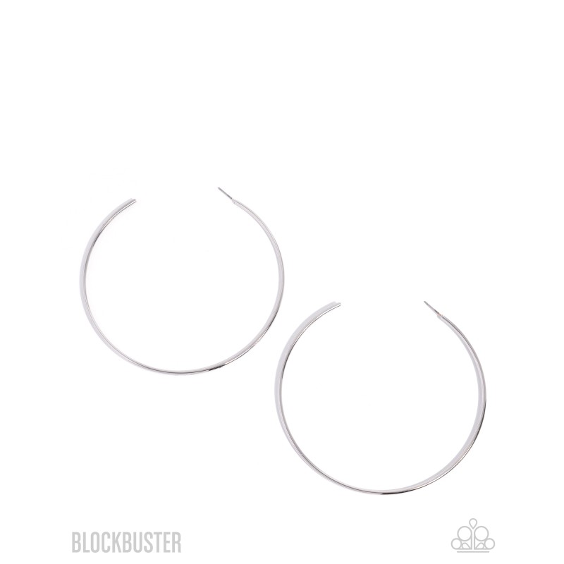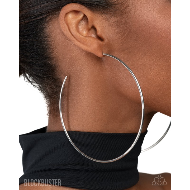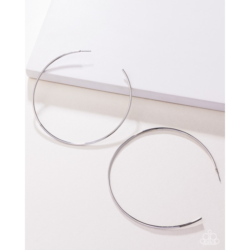 A classic silver bar curls into an outrageously oversized hoop for a trendsetting look. Earring attaches to a standard post fitting. Hoop measures approximately 4" in diameter.