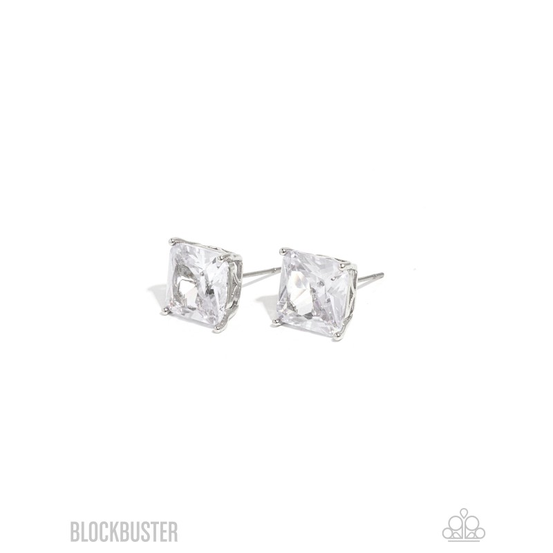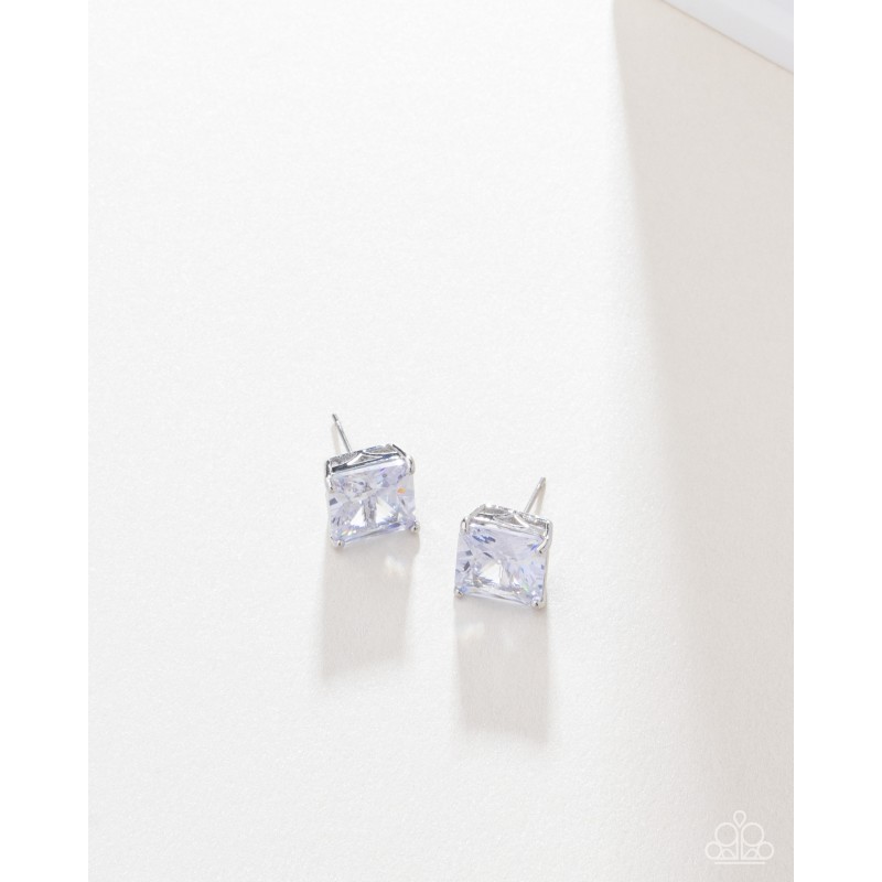Featuring a timeless princess-style cut, a dramatic white cubic zirconia is pressed into sleek silver-pronged fittings along the ear for a statement-making shimmery look. Earring attaches to a standard post fitting.