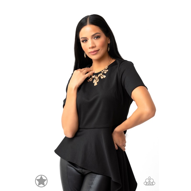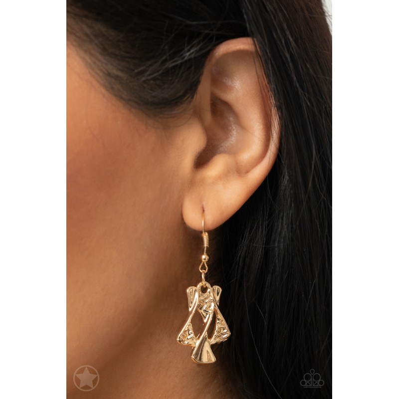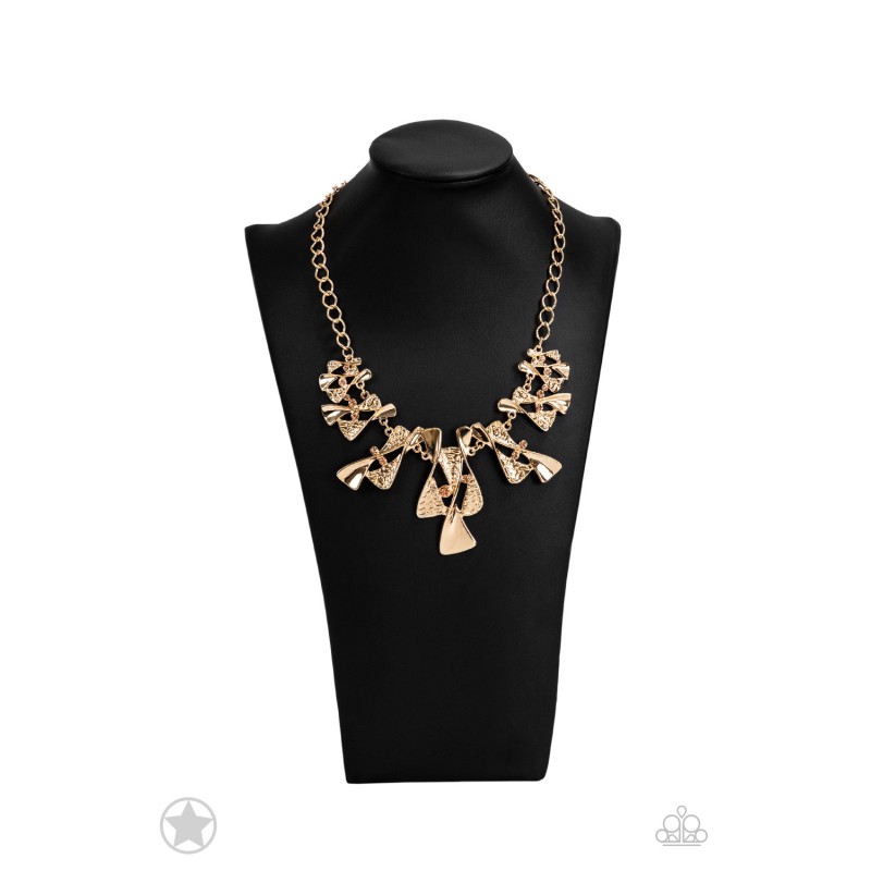 Twisted gold hourglasses dance along a chunky gold chain with tiny peach rhinestones adding sparkling, elegant accents. Beautiful textured pieces add depth to the design. Features an adjustable clasp closure.