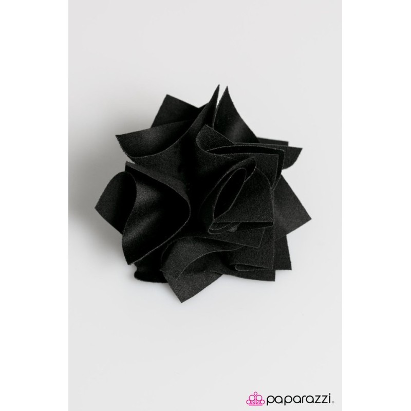 Folds of black petals come together to create a tone-on-tone design. Features a standard hair clip and a pin on the back for endless accessorizing fun.
