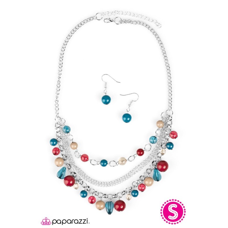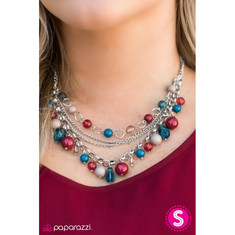 Polished beads varying in shape and opacity cascade below the collar. Two strands of plain silver chain are added to the layered display, creating a fun and flirty finish. Features an adjustable clasp closure.