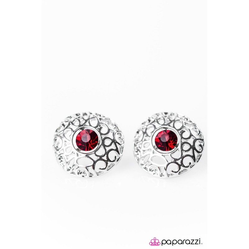 Glistening silver filigree spins around a fiery red center, creating a rich and radiant display. Earring attaches to a standard post fitting.