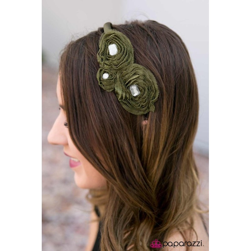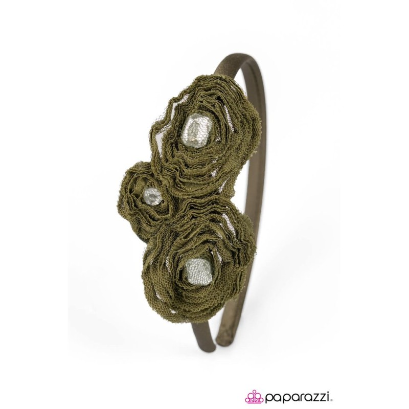 Scalloped brown rose petals sit asymmetrical on a black satin headband for a romantic display. Sold..