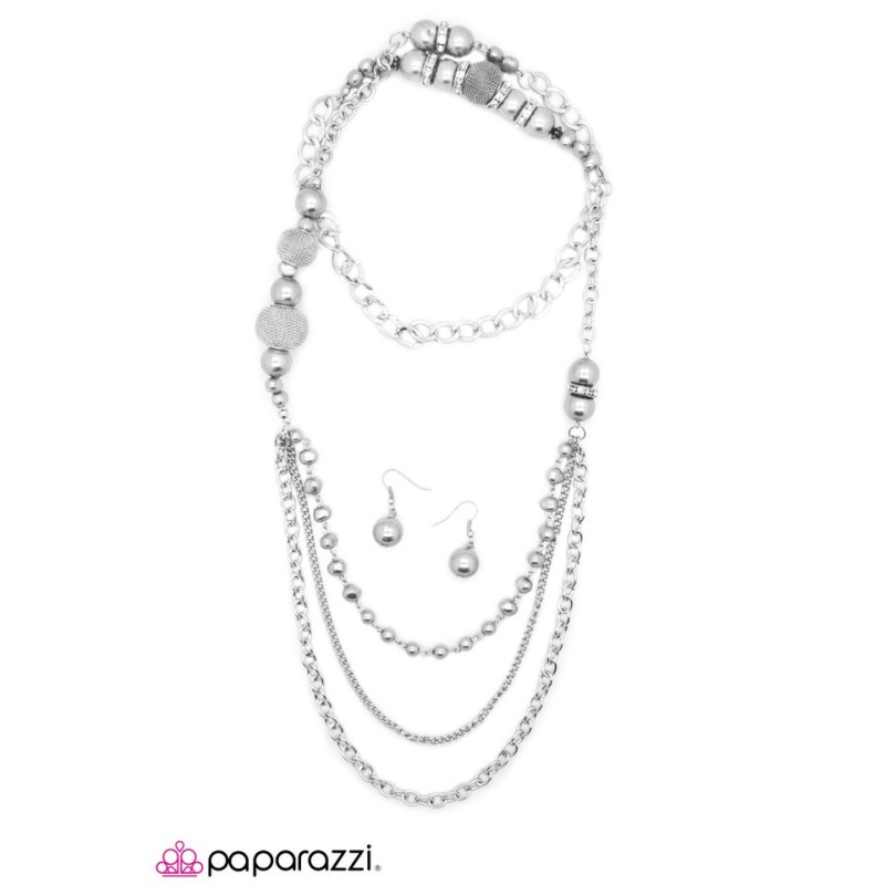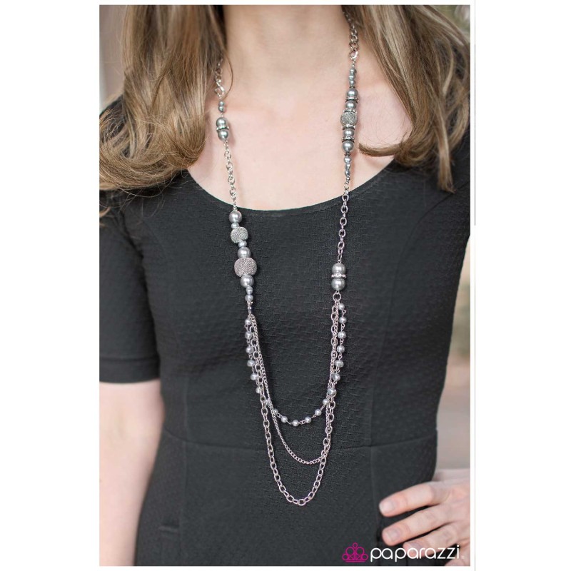 Glistening gunmetal and shimmery silver chains flawlessly alternate into gorgeous layers. Infused wi..