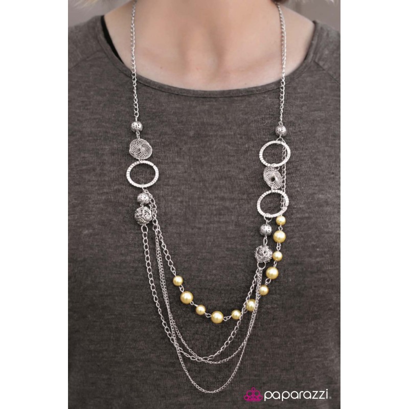A mishmash of stunning silver beads featuring twisted wire patterns combine with a row of dainty yellow beads brushed in a pearlescent sheen. Complemented with three rows of floating silver chains, the dashing beads fall into a classic layered design. Features an adjustable clasp closure.